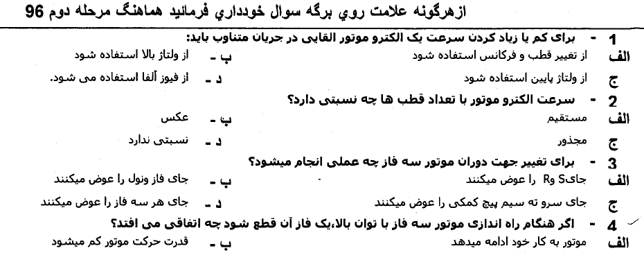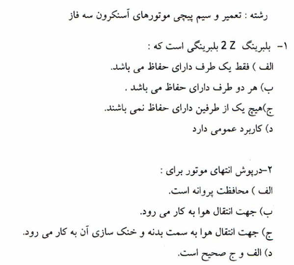 صفحه محصول - سوالات آزمون پایان دوره تعمییر و سیم پیچی موتورهای آسنکرون سه فاز - 6 صفحه - pdf
